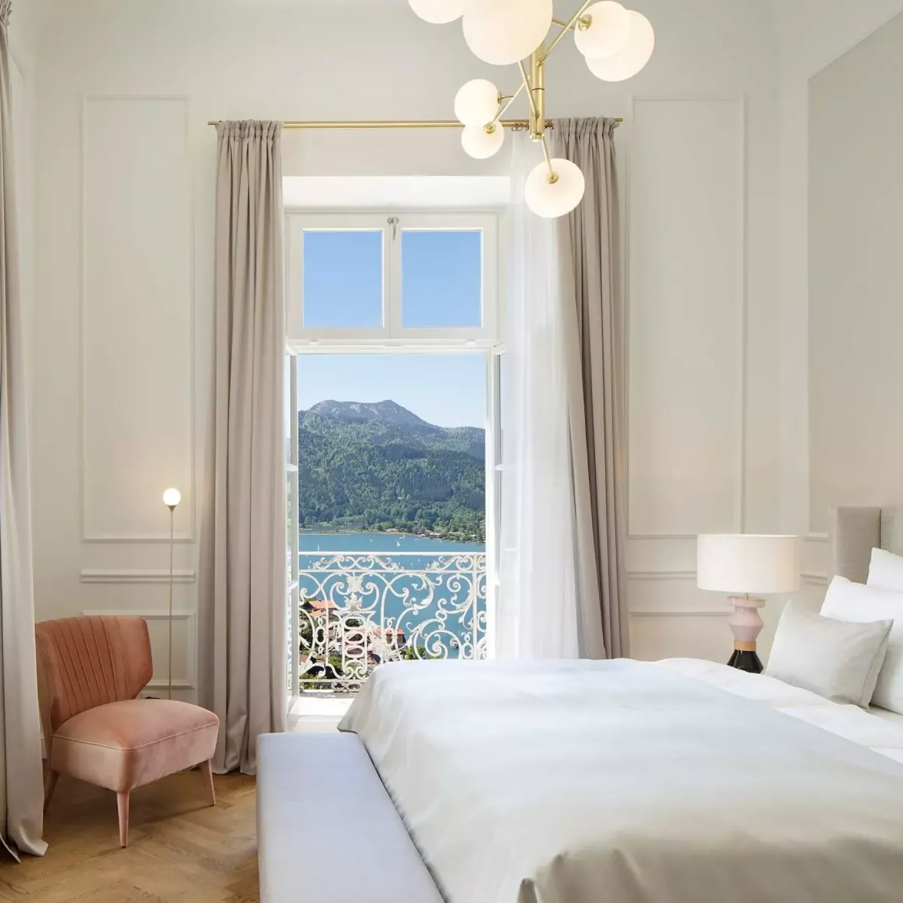The Prinzregenten Suite and the Kaiserin Suite in Sengerschloss combine historic charm with royal elegance in an unparalleled way. While the Prinzregenten Suite is inspired by Prince Regent Luitpold of Bavaria, who once used the castle as a holiday residence, the Kaiserin Suite, with its feminine tones and imperial atmosphere, evokes the spirit of famous Bavarian and Austrian empresses such as Sisi and Maria Theresa. Both suites offer not only stylish comfort and a special connection to history but also a private rooftop terrace with breathtaking panoramic views - here, you reign high above Lake Tegernsee.